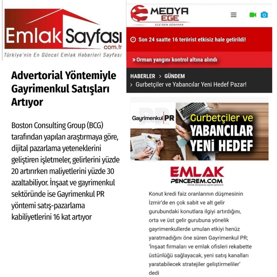 Batılı ülkelerin inşaat ve gayrimenkul sektöründe uygulanan advertorial habercilik modelini uygulayan Gayrimenkul PR’ın emlak satış sektörünün geleceğine yönelik yaptığı değerlendirmeler, geçtiğimiz hafta içerisinde Türkiye çapında yayın yapan 92 haber sitesinde yer buldu