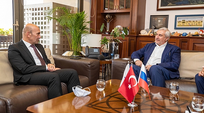Rusya-Türkiye İş Konseyi Başkanı Ahmet M. Palankoyev, Başkan Yardımcısı ve Uluslararası İş Destek Merkezi (ICBA) Başkanı Adam M. Lyanov, Rusya-Türkiye İş Konseyi Türkiye Temsilcisi Hakan Cihaner’in bulunduğu heyet, Başkan Soyer ile başta sanal fuarcılık olmak üzere İzmir ve Rusya arasındaki olası işbirlikleri üzerine görüştü